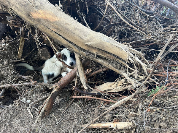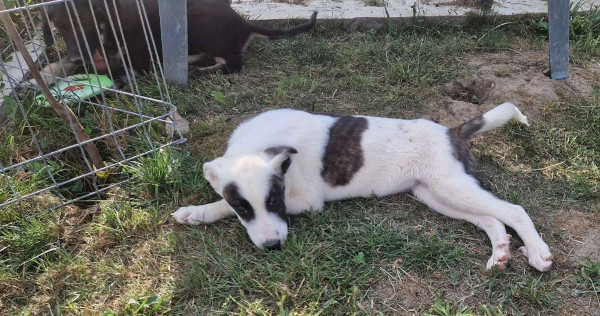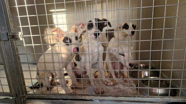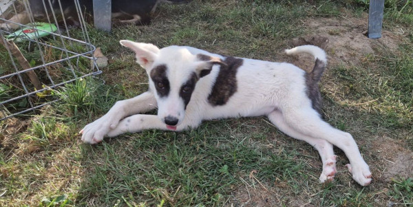 Sebastian und Peggy fütterten die Hunde im nahegelegenen Wald, als sie 4 kleine, völlig abgemagerte Fellnasen entdeckten. Sie wurden mit großer Sicherheit dort ausgesetzt, denn es war weit und breit keine Hundemama in Sicht.
