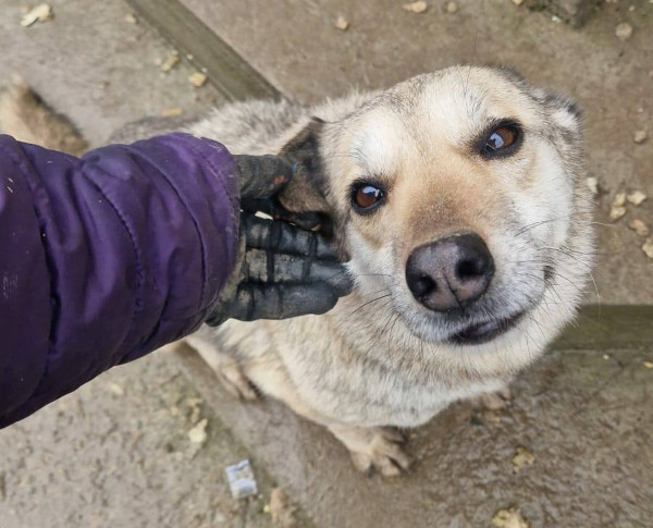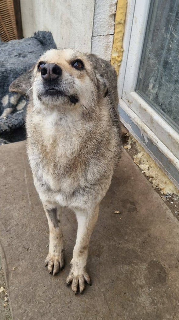 Die ausgesprochen freundliche, alte Hundedame Theda kam durch eine große Kastrationsaktion, die Cristina und Sebastian durchgeführt haben, ins Shelter.
